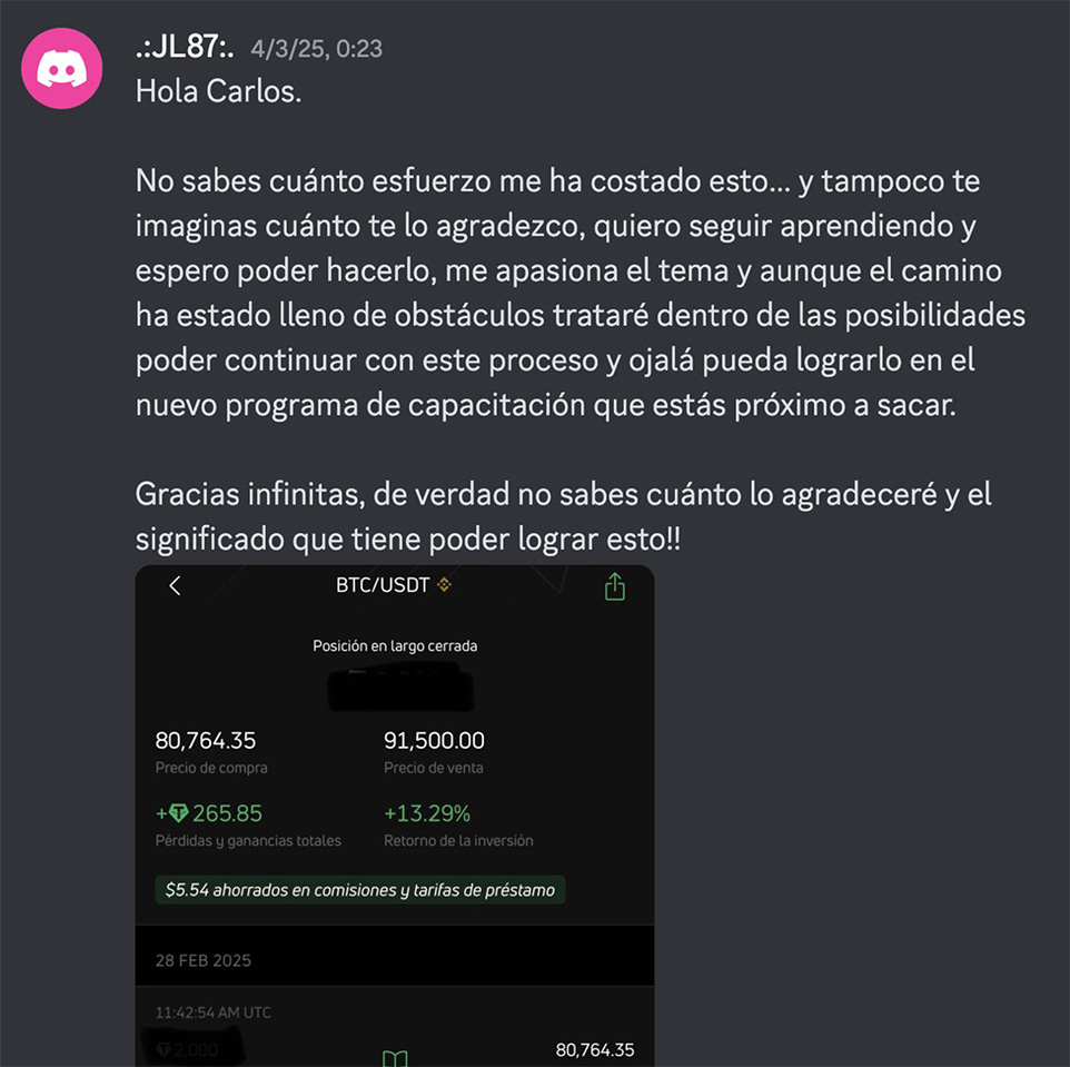 ✅ Formación real y viva impartida por trader real: Carlos opera a diario, enseñando lo que usa, no teoría vacia.